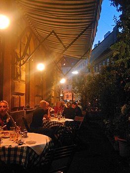 Auf der Seite zur Mühlgasse hin liegt ein gemütlicher Schanigarten, von der