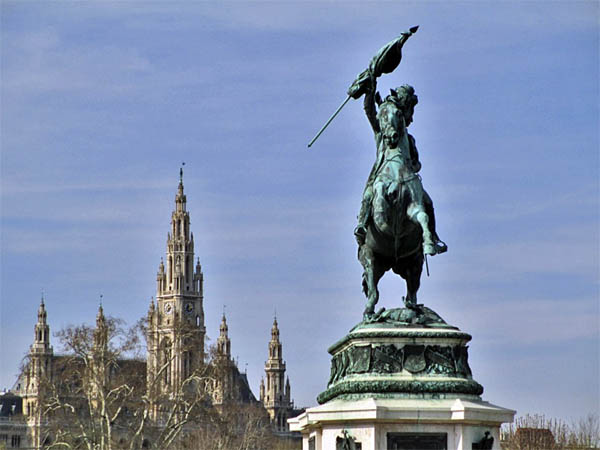 Erzherzog Karl ist bildlich bis heute an prominenter Stelle präsent: Für den Heldenplatz vor der Neuen Burg schuf Anton Dominik Fernkorn ein Reiterstandbild Erzherzog Karls. Es gilt als eine der bedeutendsten Bildhauer-Leistungen jener Zeit, zumal das 20 Tonnen schwere Werk aus Bronze einzig auf den beiden Hinterläufen des Pferdes ruht. So etwas hatte in solcher Dimension bis dahin als unmöglich gegolten. Das Denkmal wurde 1859 feierlich enthüllt. Es steht auf einem monumentalen Sockel aus Untersberger Marmor. Die Pläne dafür lieferten die Architekten den Hofoper, Eduard van der Nüll und August Sicard von Sicardsburg.